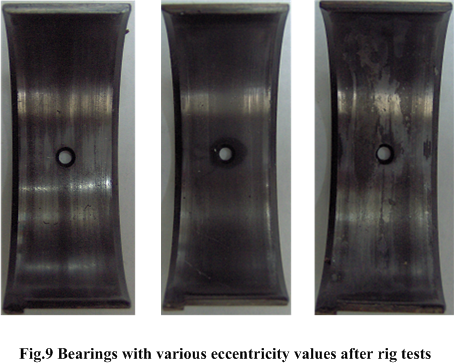 Experimental bearings (C 697XP) with three different values of eccentricity (0.2, 0.8 and 1.4 mil) were tested at a specific load of 9000 psi.